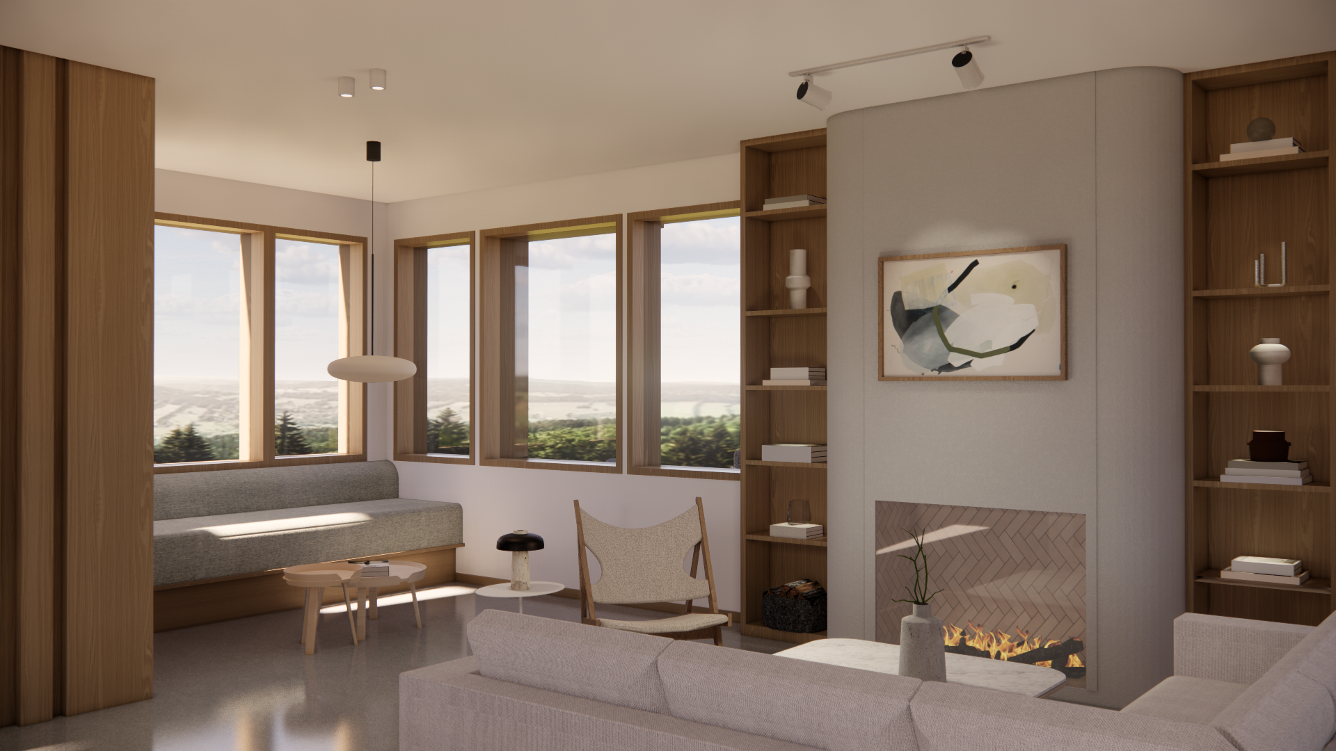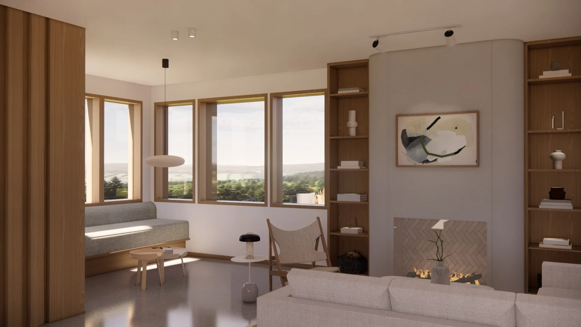 Surrounded by lush trees and salty air, this home is a short walk away from the beach. Inspired by the property’s location, the concept for this home is inspired by BC’s rugged shorelines and pebbly beaches. Curvilinear lines are balanced by linear repetition throughout this home, while polished surfaces reflect the beauty of the many pebbles found at the nearby beach. A neutral colour palette is complimented by subtle blues and greens as a way to maintain an elevated space with a strong connection to nature.