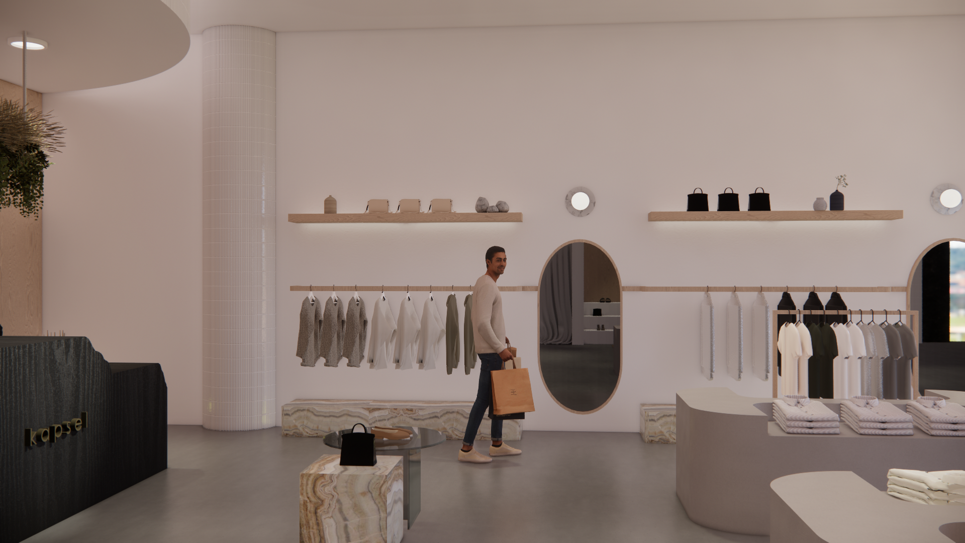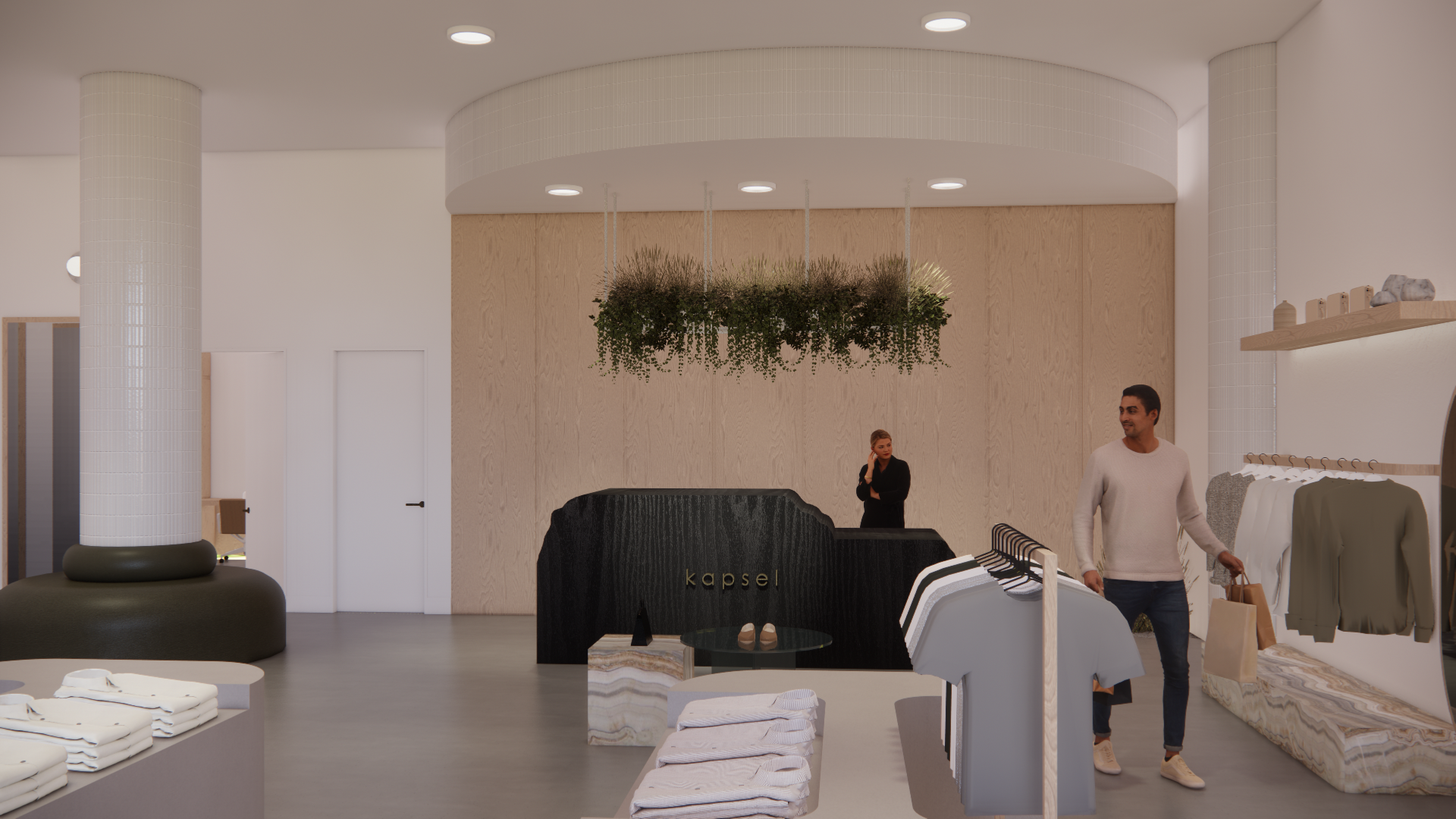 The Kapsel flagship store represents a curation of timeless, sophisticated and genderless clothing. The space is inspired by the feeling of being grounded in the Earth's foundation, in the same way that Kapsel offers a foundation for one’s wardrobe.