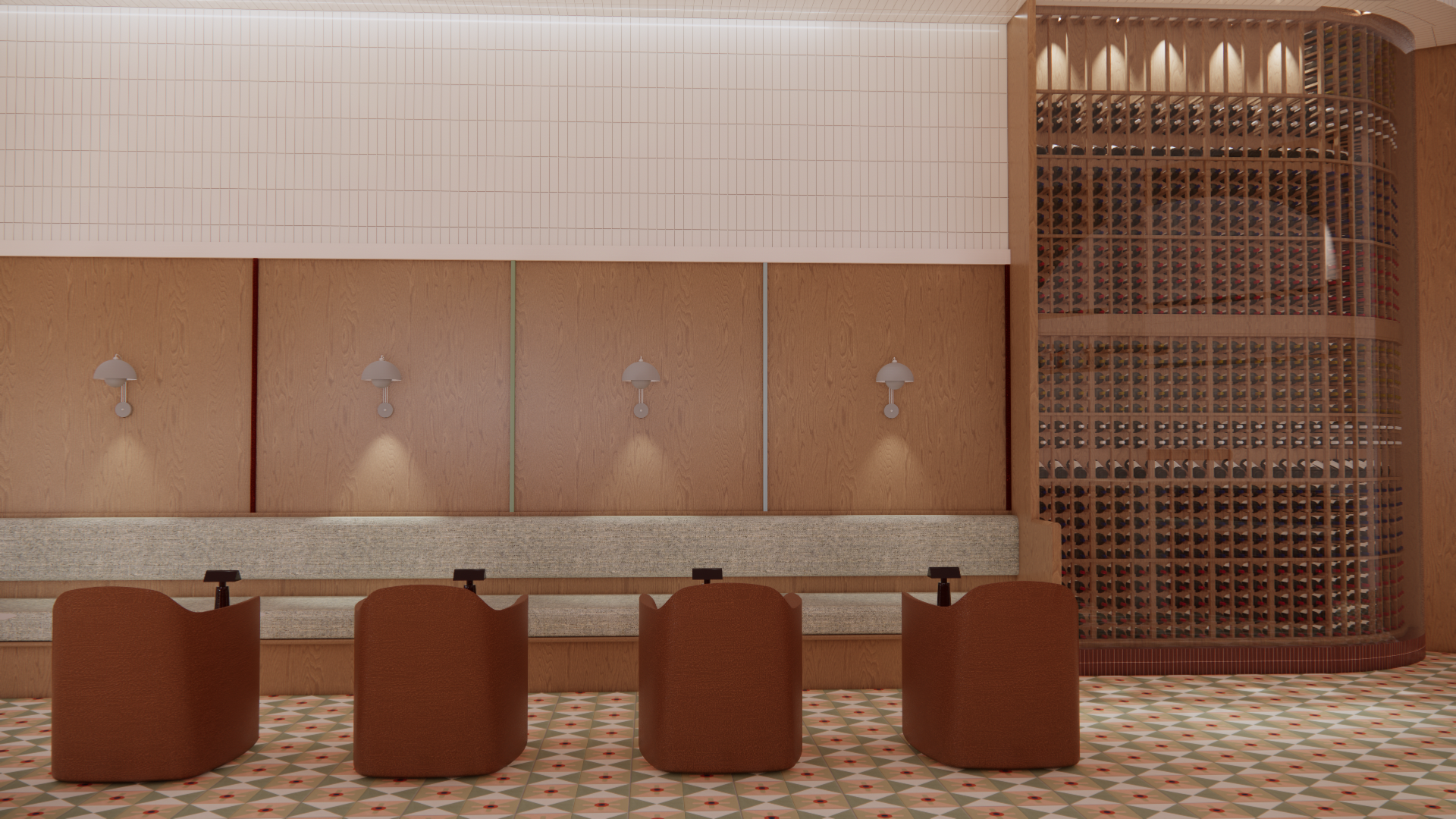 In the way that tapas fuse a variety of flavours into one delicious meal, a blend of organic shapes and linear patterns suggest a dynamic and playful atmosphere. Vibrant hues and sleek textures put a modern twist on a traditional Spanish cuisine, while natural wood tones maintain a warm and inviting ambience.